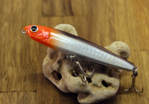 דמוי פנסיל בצבע לבן ראש כתום ,גב עם פיגמנט מחליף צבע באור השמש,עם קשקשים הולוגרפיים.